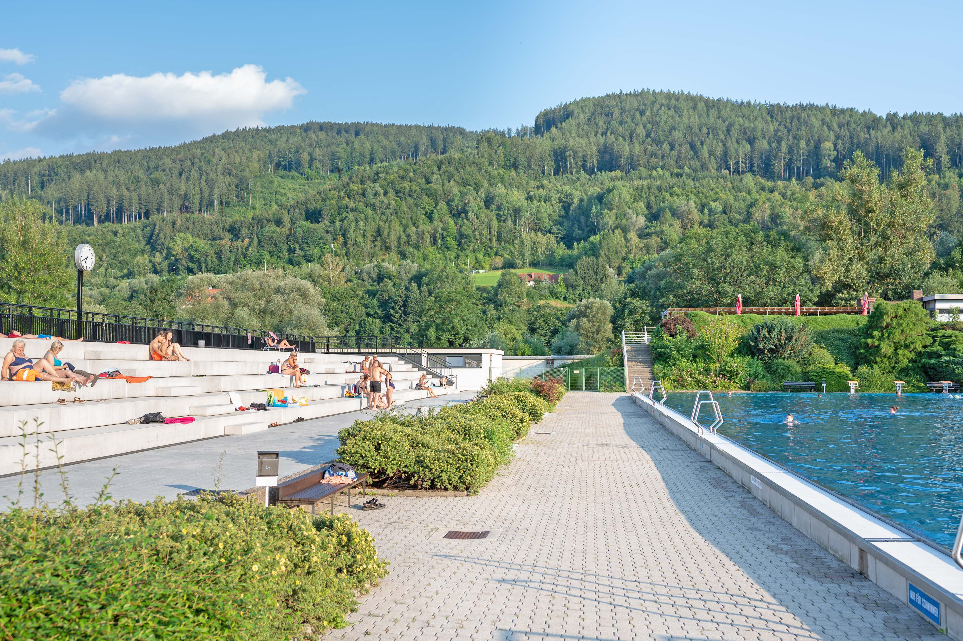 Geöffnet ist das städtische Freibad jeweils Montag bis Sonntag 9.00 bis 20.00 Uhr (ab 01.09.2024 Montag bis Sonntag 9 bis 19 Uhr).