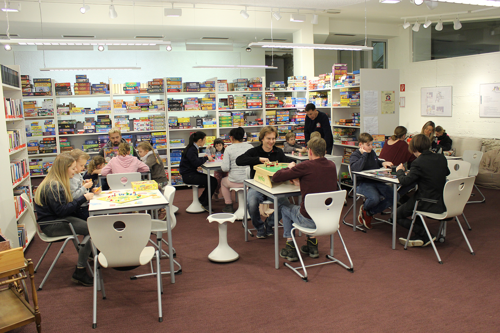 BERATUNG UND VERLEIH: Über 1.300 verschiedene Brett- und Kartenspiele können in der Ludothek ausprobiert und entliehen werden. Dazu gibt es immer eine spielkundige Beratung. Für Tipps und Spielerklärungen wende dich gerne an unsere spielkundigen Erklärer.