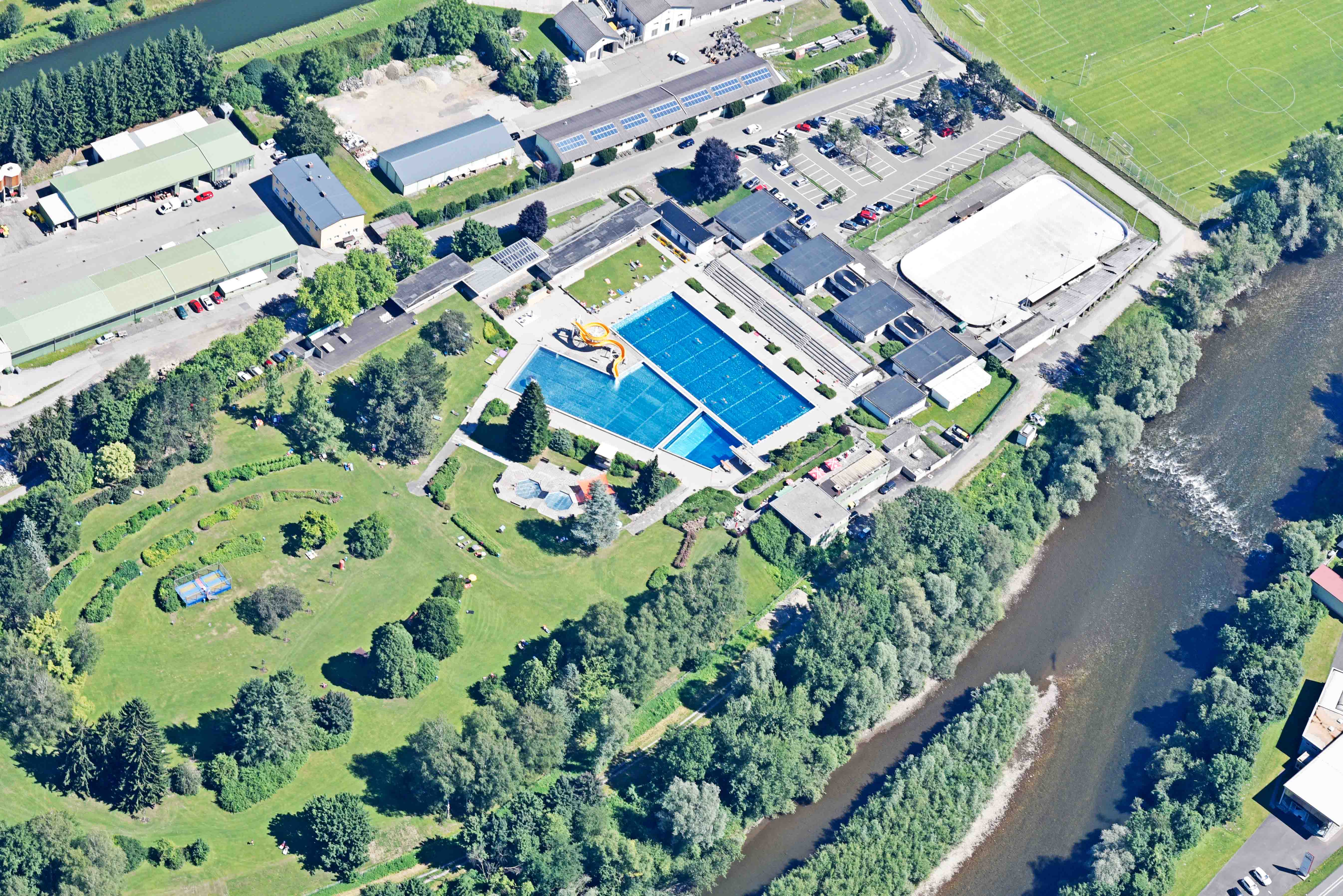 Das Städtische Freibad auf der Murinsel zählt mit Sicherheit zu den schönsten und größten Schwimmbädern der Obersteiermark und erfreut sich überregional großer Beliebtheit.